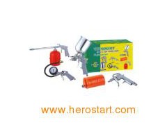 MODEL: W-2000A1 5PCS AIR TOOL KIT WITH SUCTION SPRAY GUN-COLORBOX Contatins: Spray gun, Air duster gun, Washing gun, Tire inflating gun, Spiral air hose. Mainly used for car maintaining. It can supply spraying painting, blowing of dust, pumping air to cars.