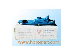 The rock drill is a kind of high efficiency air leg rock drill machinery. It is mainly used for diging into mine laneway and blasting holes in all drilling works. It is indispensably importance machine tool in metallurgy, coal, railway, traffic, water conservancy construction and national defence stone project. It is suitable for drilling and blasting under various of rocks at any direction angles. Blast hole dia is 34-42mm, drill hole depth is 5 m This machine may match with Model FT160BD short air leg or Model FT160BC long air leg. This machine has transparent surface of FY200B oil reservoir, easy to observe the oil lever, adjust oil quantity, ensure the well lubricated. Weight 26 kg Length 661mm Cylinder dia 80mm Piston stroke 60mm Air pressure 0.4- 0.63MPa Impact frequencey ≥ 37 Hz Air consumption ≤81L/S Air pipe (inner dia ) 25mm Water pipe (inner dia ) 13mm Drill bit dia 34-42mm Shank dimensions(hexxlength) 22x108+-1mm The function specification that Air pressure is 0.63Mpa FT160BD Air leg(short) Length 1400mm Push stroke 965mm Cylinder dia. 65mm Weight 14.4 k