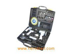 Contents: 1-1/2'' dr.impact wrench 1-1/4'' die grinder 1-3/8'' reversible drill 1-150mm hammer, round 1-150mm duala ction sander 10-1/2'' DR. SOCKET: 9, 10, 11, 13, 14, 17, 19, 22, 24, 27mm 1-hex key wrench 4mm 2-hand wrench 1-1/8'' collet chuck Contents: 5-1/4'' grinding stone 5-1/8'' grinding stone 2-phillips drill bit: No.2, 3 2-slotted drill bit: No.4, 6 1-chuck key 1-spring retainer 4-round shank chisel 125mm 1-sanding pad 2-sanding paper 1-oil pot 1-blow case