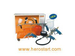Model: W-2004A1 5PCS AIR TOOLS KIT -GRAVITY SPRAY GUN---COLOR BOX Contains:spray paint gun, blowing air gun, washing gun, infllating gun, spiral hose Mainly used for car maintaining. It can supply spray painting, blowing off dust, pumping air to cars. Kit can be supplied with Italian fitting German quick coupling American quick couping Japanese quick couping