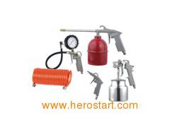 Air tools kit 5PCS-1 It contains: Spray paint gun, blowing air gun, washing gun, inflating gun, spiral hose Mainly used for car maintaining. It can supply spray painting, blowing off dust, pumping air to cars.