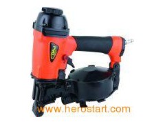 1. New designed strong & light die cast aluminum / magnesium alloy body. 2. Drive standard 15 degree wire-collated roofing nails from 3/4" to 1-3/4" in length. 3. 360 degree adjustable exhaust cover. Allows air to be directed away from the operator and the materials being fastened. 4. Comfort rubber grip. 5. High impact engineered plastic magazine with adjustable bottom steel plate. 6. Penetration depth adjustable for avoiding stapling marks. 7. No-mar tip storabel in the canister: Ensures undamaged wood surfaces. 8. Dual action for this tool. Widely applied in floor and wall framing, siding installation, wood box assembly, fencing fasterning lath wire on the plywood, roof and wall heathing.