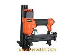 Dimension: 230x150x270mm(11.62"x5.90"x10.24") Weight: 2.40kgs(5.35lbs) Operation pressure: 0.5-0.8Mpa(75-120Psi) Magazine capacity: 100 PCS Staples Container loading capacity: 20': 1700PCS Features: 1. Light weight die-cast body prevents arm fatigue during prolong use. 2. Adjustable depth of drive. 3. Rubber comfort grip. 4. Fast easy bottom loading. 5. Both bump and sequential mode available. 6. Make cap stay on workplace tightly. 7. Applocation: House Wrap, roofing felt and foam board.