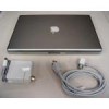 | Apple PowerBook G4 Laptop Processor: 1.67GHz PowerPC G4 Memory: 512MB PC2-4200 DDR2 SDRAM running at 333MHz Display: 17-inch (diagonal), 1680 x 1050 resolution, TFT Graphics processor: ATI Mobility Radeon 9700 with 128MB of DDR SDRAM Storage: 120GB Ultra ATA/100; 5400 rpm Optical drive: 8x SuperDrive with double-layer support (DVD+R DL/DVD and RW/CD-RW) Ethernet: Built-in 10/100/1000BASE-T (Gigabit) Wireless: Built-in 54-Mbps AirPort Extreme; built-in Bluetooth 2.0+EDR Modem: Built-in 56K V.92 Video I/O: DVI, S-video, VGA (with included adapter), and composite (with included adapter) Audio I/O: Optical digital input/audio line in; optical digital output/headphone out Expansion: One FireWire 400 port; one FireWire 800 port; two USB 2.0 ports, PC card slot Keyboard: Full-size, backlit Software: Mac OS X v10.4 Tiger; iLife 05 |