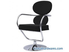 Roxy chair with smooth rotating base Finished in black soft fabric and chrome frameBack of the chair is designed in two oval shaped sections Ideal for home, office and commercial use Contemporary designed chair with solid chrome base Also available in red colour