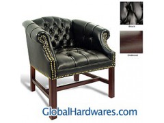 Visitor chair offers a thick foam padded seat and back for all day comfortOffice chair features a solid wood frame with a rich finishChair is constructed of durable and easy-clean vinyl