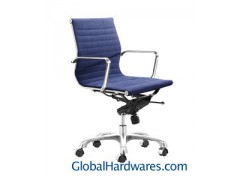 Manhattan denim blue office chair features chrome-plated steel frame with rolling base Comfortable office furniture provides canvas fabric seat and back Versatile chair has an adjustable and locking tilt