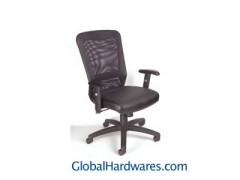 Mesh back, adjustable height arms, spring-tilt mechanism, black leather office computer seat