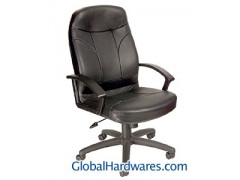 Executive chair upholstered in genuine black leather with ergonomic seating and built in lumbar support Office chair's ergonomic design promotes lower back comfort Feel like the chairman of the board in this traditional seat