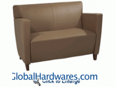 This office loveseat from Office Star Products features genuine leather upholstery available in black or taupe.Extra wide seating area Thickly padded cushions Box style armrest Solid wood legs Cherry finish on legs