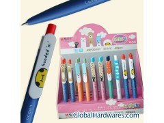 Ballpoint Pen Tip Size:0.38mm/needle Ink Color:Blue Barrel Color:5 colors Package:40pcs/display,1200pcs/ctn Features: Vivid barrel colors and cute designs for students. Big clip suitable for promotion. Website conference: