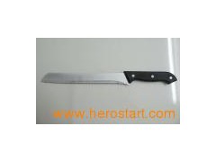 Bread knife Material: Stainless steel + plastic handle MOQ: 3000PCS Sample leadtime: About 3 days Mass production leadtime: About 25days Logo: Laser or silk logo Packing: PP bag+white box, blister card, gift box /Custmized packing is acceptable. Pls contact us for more information!