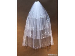 1) Fabrics: Netting tulle with embroidery2) Size: 1.5 meters3) Color: white, ivory (can custom any color with big quantity) 1) Marvelous Bridal Veil in dramatic style with high-quality fabrics such as French Taffeta, Organza, Taiwan Satin etc2) With various colors and sizes available;3) Used in special occasions, amazing style4) Packing: Inner Packing:1 pc/plastic bag; Outer Packing:1 dozen/carton5) Small order is welcome