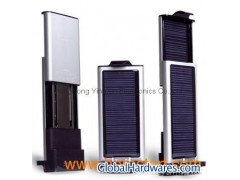 DESCRIPTION Solar Panel(mono or multi-crystallinea) 5.5V/145mA Li-ion rechargeable Battery 3.7V/1000mAH Mini USB Input voltage/current 5V/500mA DC Output voltage/current 5.5V/500mA Charging time through solar panel 8-10hours Charging time through USB port 3-4 hours Discharging time to mobile phone 2-3 hours Size 54mm*128mm*29mmN.W. 125g Color Silver, Rose, Blue, Golden&Gray Accessory No