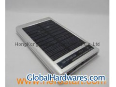 1.Mono-crystalline silicon wafers or multi-crystalline silicon wafers with high conversion efficiency are used,which enables a high solar energy conversion efficiency of over 16% 2.Solar panel specification:5.5V160mA3.The built-in high capacity rechargeable polymer lithiumion battery: 2600mAH 4.Output voltage: 5PIN 4.5V/5.5V/6.5V/9V(Optional) 5. max output current: 5PIN 500mA 6.Time for charging a mobile phone: about 60 minutes(the time may vary slightly depending on mobile phones lf different brands and models) 7.Time for charging the built-in battery through solar energy: 10-15hours 8.Time for charging the built-in battery through a compute of AC adaptor:4-6hours 9.Machine Weight:110g 10.Overall Size:12.2*7.6*1.2cm 11.Color:Silver / blue / red / black 12.Packaging:Neutral Package Box 13.Accessories:AC Adapter1PC,AC Input Line1PC,Charger Output Line1PC,Plug Adaptors 5PCS(for Motorola,Samsung,Nokia,Sonyericsson)