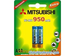 Features: 1) Ni-MH AAA950 rechargeable battery, Ni-MH rechargeable battery, 950mAh rechargeable, cylindrical battery, AAA rechargeable battery 2) Brand: MITSUBISHI 3) Nominal Voltage: 1.2V 4) Average Weight: 13.5g 5) Nominal Capacity: 950mAh 6) Diameter: 10.5mm 7) Height: 44.5mm 8) Shelf Life: ≥500 times 9) Battery Applicable Products: Digital camera, CD Player, PDA, Electronic products, etc.