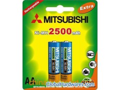 1) Ni-MH AA2500 rechargeable battery, Ni-MH rechargeable battery, 2500mAh rechargeable, cylindrical battery, AA rechargeable battery 2) Brand: MITSUBISHI 3) Nominal Voltage: 1.2V 4) Average Weight: 28g 5) Nominal Capacity: 2500mAh 6) Diameter: 14.5mm 7) Height: 50.5mm 8) Shelf Life: ≥500 times 9) Battery Applicable Products: Digital camera, CD Player, PDA, Electronic products, etc.