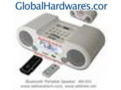 Bluetooth Portable iPod Speakers AN-031Bluetooth 2.0 Built-in - iPod Dock MMC/SD Card Input - USB Input Remote control Output power: 3Wx2 Speaker Driver: 2''x2 Impedance: 4ohm Frequency response: 50HZ-18KHZ Unit dimension: 280x145x90mm Signal to noise ratio: >80dB Digital clock display