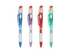 The push button LED lightening plastic ballpoint pen with the top in the shape of Santa Claus can be made according to our standard or completely to your specifications. They are widely used for promotion and advertisement. Logo printing is available. They can be used as giveaway during product launches, exhibitions, for use at receptions, hotel, trade fairs and training seminars - all with your logo on it. Material: Plastic Size: 14.9 x 1.8 x 2 cm Package: Polybag Options available for customization: Color: You can order any color you want. Logo: Logo printing is available. We can also produce according to the blueprint or samples you offer.