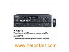 Product Description K-120 SERIES POWER KARAOKE AMPLIFIERoutput power K-120E2 K-120E3 K-120T2 K-120T3 8ohm 180W× 2 180W× 2 180W× 2 180W× 2 Sub-woofer 300W(4 ohm) 300W(4 ohm) EQ 7 band 7 band Frequency response MIC≤ 6mV MIC≤ 6mV MIC≤ 6mV MIC≤ 6mV Signal to noise ratio ≥ 90dB ≥ 90dB ≥ 90dB ≥ 90dB Crosstalk ≥ 70dB ≥ 70dB ≥ 70dB ≥ 70dB Damping factor ≥ 350 ≥ 350 ≥ 350 ≥ 350 Slew rate ≥ 9Vus ≥ 9Vus ≥ 9Vus ≥ 9Vus Dimension(mm) 430× 140× 380 430× 140× 380 430× 140× 380 430× 140× 380 Weight(kgs) 15 18 15 18
