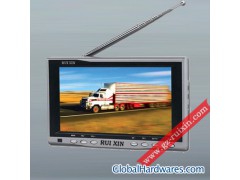RX-702 (7'inch 16:9 Desktop TV)1. Specification: 7'inch (16:9)2. Display: Color TFT-LCD3. Image Mode: A. 16:9 Mode; B. 16:9 Extend All-Screen Mode; C. 4:34. Images Swivel Left to Right, Up to Down5. Support Color System: AUTO.PAL.SECAM.PAL-M/N.NTSC (NTSC/M Can Made to Order)6. Audio Format: D/K.B/G.I/M7. Language: Chinese, English, German, Russian, Arabic etc.8. AV Input: AV1, AV29. Audio Output: 0.5W (Max)10. Digital Calenda: Year, Month and Date11. Auto Power On/Off 12. Digital All-Screen Remote Controle13. 160 Supplementary channels; Predetermine Channels 14. Built-in Loudspeaker 15. Joint End: External Antenna, Micphone, Audio, Vedio(2 Tracks), Power Supply16. Working Power: (A) AC- Power Adapter (B) Auto Battery (12V) Adapter