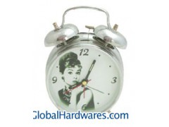 1.Material:metal 2. the size of clock:16*11.6*5.7CM 240G 3. package: white box 4. with star pic design on the face 5.Features Arabic Numerals 6.it has a accurate Movement,with CE and ROHS certificate 7.Battery Powered , requires one AA bettery which is not included, When achieving its setting time, it will ring lasting one and a half hour,unless you press the alarm switch