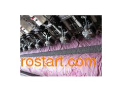 RP Single needle row quilting embroidery machine is multi-heads quilting embroidery machine, it has 3 colors one every head, and it has automatic trimmer or no trimmer Function as you select, and it has 16, 18, 20, 22, 24, 25, 30, 33 heads machines, over 25-heads machine can make 2 single roll of fabric by 1.6m width or to make 1 big roll Of fabric by 3.2m width. And less 25-heads machine can make only 1 single roll of fabric by 1.6m width and can be equipped with double front style sequins device from both Sides on every heads. This style machine can be attached with sequins device from 1 or 2 sides on every heads, but here has limitation, the machines heads should be less or equal 25 heads, if the machine Is more than 25 heads, then sequins devices are not workable, for the head interval is too narrow, cannot get them installed on the machine. Meaning 25 heads machine is biggest Sequins quilting embroidery machine. And simple cording device and our newest developed simple chenille device can be attached one the heads of this style machine, too. What's more, it can be combined with Professional Cording heads to achieve the follow all functions in one machine. Quilting function+ embroidery function + sequins function + cording head function (can make coiling, taping, cording and zigzag stitch) +simple chenille function can be said, It is very multi-functional machines, it can perform all your demand on quilting. The above combination can be 10 pairs at Max. Only. This is called 4-in-1 quilting embroidery machine!