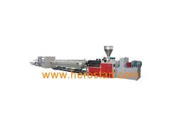 GF series plastic pipe material production line is mainly used in the area of agricultural water supply system, architectural water supply system, pavement of cables, etc. As well as PVC pipe material of all sorts of pipe caliber and wall thickness. This machine group consists mainly of twin conical (parallel) screws extruder, vacuum calibrating tank, haul-off unit, cutting unit, tilter, etc. Single screw extruder and haul-off unit have applied imported A/C inverter, both vacuum pump and driving motor have applied excellent products, the drawing machine includes two-claw type, four-claw type, eight-claw type, etc. Saw cutting and planet cutting can be applied. It is additionally applied with length measuring meter and thickness increasing device, the property of machine group is reliable, the production efficiency is high. With special device, it can Produce inner wall spiral pipe, inner wall hollow pipe, and core layer bulpo pipe etc, it can also produce PP PE ABS PPR PEX, silicon core pipe and pipe material of other material. The planetary cutting machine is fully automatic computer digital control, it has such advantages of simple operation reliable property etc. It has reached world advanced level.