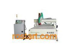 CNC Routers With ATC QLM25-I Details: 1, imported straight square Guides, double-row ball slider 4, the loading capacity, smooth operation, high accuracy and long life. Import high precision ball screw, high knife precision. 2, computer can be completely divorced from remote operation of USB interface DSP operating system, grip-type operation, operating more simple, more human design, unique intelligent budget rules, and give full play to electrical potential, high-speed processing, Qu Linear Synchronous, the perfect curve, not computer memory and achieve cutting from the spindle automatic suspension. 3, software compatible with type3/Artcam/Castmate/Wentai, other CAD/CAM design software. 4, 6 vacuum adsorption surface area, can be effective against different sizes of plates adsorption. Vacuum pump can be selected imports of oil-free vacuum pump brands to solve cold weather, water cycle and water pump trouble for the issue. 5, high-speed drive stepper motor and drive, double-Y-axis motor drive, high-speed operation up to 35m/min empty row over speed with cutting vigorously carved spindle speed can improve more. Appliable Fields: 1. Woodworking: 3D wave plate, cupboard doors, furniture, decorative material, computer table, cabinets and panels, plastic fabrication, model, art crafts, musical instrument, plate. 2, advertising: Large advertising signs, acrylic brands, tablets, calligraphy, 3D characters cut, garden or wall decoration, logo, acrylic cut, billboard, plate production, LED/neon channel, literal-hole cut, Lightbox mold, stamp 3, die industry: Sculpture of copper, aluminum, iron and other metal molds, as well as artificial marble, sand, plastic sheeting, PVC pipe, wooden planks and other non-metallic mold. 4, others: Large-scale relief sculpture, video carving, craft and gift, widely used in process industries gifts.
