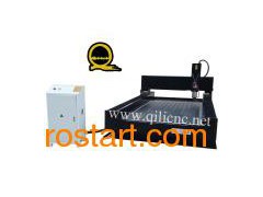 QL-1218 Stone CNC Router Characteristics: 1, Imported linear square rails, dual four slider, loading capacity, smooth operation and high precision, long life, under the knife precision. 2, The entire machine seamless welded steel structure, rigid Haobu deformation, table back lining plate, the rigid strength, and machine loading capacity can be 3, Constant power spindle motor, cutting intensity, high efficiency. 4, Software compatibility, and compatible with Typ3/Artcam/Castmate / Wentai, and other CAD / CAM design software 5, Two-way tool cooling system, effectively raising tool life Scope: Granite, marble, bluestone, sandstone, and other stone carvings Granite and other hard stone carving to be at level 5 mm Marble, bluestone, can be a sculpture to 5 mm Standard Configurations O Square Tube Lathe Bed with water tank O X/Y with racks, all with square guides and dust cover O Axis Y with two motors O 3.0 KW Spindle and Transducer and large Leadshine driver O NCSTUDIO System O Auto Lubrication System O Optional: DSP Control system.