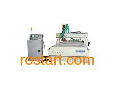 CNC Router with ATC QLM25-I Details: 1. Imported straight square Guides, double-row ball slider 4, the loading capacity, smooth operation, high accuracy and long life. Import high precision ball screw, high knife precision. 2. Computer can be completely divorced from remote operation of USB interface DSP operating system, grip-type operation, operating more simple, more human design, unique intelligent budget rules, and give full play to electrical potential, high-speed processing, Qu Linear Synchronous, the perfect curve, not computer memory and achieve cutting from the spindle automatic suspension. 3. Software compatible with type3/Artcam/Castmate/Wentai, other CAD/CAM design software. 4.6 vacuum adsorption surface area, can be effective against different sizes of plates adsorption. Vacuum pump can be selected imports of oil-free vacuum pump brands to solve cold weather, water cycle and water pump trouble for the issue. 5. High-speed drive stepper motor and drive, double-Y-axis motor drive, high-speed operation up to 35m/min empty row over speed with cutting vigorously carved spindle speed can improve more. Appliable Fields: 1. Woodworking: 3D wave plate, cupboard doors, furniture, decorative material, computer table, cabinets and panels, plastic fabrication, model, art crafts, musical instrument, plate. 2. Advertising: Large advertising signs, acrylic brands, tablets, calligraphy, 3D characters cut, garden or wall decoration, logo, acrylic cut, billboard, plate production, LED/neon channel, literal-hole cut, Lightbox mold, stamp 3. Die industry: Sculpture of copper, aluminum, iron and other metal molds, as well as artificial marble, sand, plastic sheeting, PVC pipe, wooden planks and other non-metallic mold. 4. Others: Large-scale relief sculpture, video carving, craft and gift, widely used in process industries gifts.