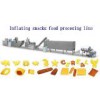 Inflating snacks food processing line can produce all kinds of inflating foodstuffs, various snacks foods, rice bread, rolling snacks, crackers, gruels, nutrient powder, breakfast, and so on. Inflating snacks food processing line is foodstuff equipment researched and developed on the basis of international advanced technology. The performance and quality have reached the highest international level of the same line. From feeding materials, extruding and inflating, core filing, shaping, roasting, spraying to finished products are done once time with automation. We fill the gap of the first-class food produced with extruded and inflated technology. 1) Output: 120 kg/h, 180kg/h, 280kg/h, 500kg/h. 2) Raw material: such as rice, corn, millet, wheat, oats, buckwheat, bean, starch and so on. Main features: 1) Stable performance: adopting imported frequency or electromagnetic controlling system, high automation and smooth operation 2) Permanent working life: with special material and technology, the screw and nut involved can work continuously for 1 year under conditions of high wear and pressure Flow chart: core filling - mixing - extruding and inflating - shaper and cutting- conveyor - drying - flavoring