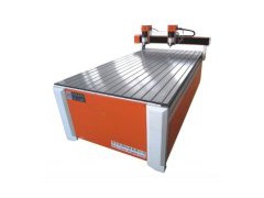 Double head CNC router DL-1212. 1). Brushless water cooled spindle 2). Imported linear guide rail 3). Memory on break point Double head CNC router Product feature 1. Multi-spindle can be processed at the same time and also be used solely. The machine with multi spindle raises the multiple efficiencies compared to the machine with one spindle. And it is economical and practical. 2. It may use one spindle to process the large-scale work piece solely instead of other spindles. 3. Adopts the imported ball screw rod with high precision, it may play down the clearance to the smallest which is produced in the course of movement and make the precision and orientation more accurate. 4. Imported line guide rail makes all sides of machine bear equally, which guarantees the precision and intensity of machine. 5. Adopts the way of memory on break of point, which guarantees continuous processing in the condition of suddenness, such as break cutter, and interval of days. 6. The machine is moving just like a gantry, the lathe is cast wholly, it is firm and durable, the machine will not deform after long playing use. 7. It may customize multi spindle according to the requirements of clients, the table of the machine can be customized. Double head CNC router Applications The products have been widely used in advertisement gifts, crafts industry, model processing industry, architecture, seal, woodcutting, stonework, decoration, and habiliment machining, and other areas.