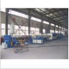 Brief introduction: 1. Pipe range: Φ 16-Φ 800mm 2. Output: 80kg/h-850kg/h 3. Production speed: 0.1-15m/min Process flow: Raw material+master batches--mixing--vacuum feeding--material dryness--single screw extruder--mark line extruder---mould--calibrator---vacuum spray calibration tank---spray cooling water tank---color-ribbon printer--pedrail haul-off--planetary cutter--stacker---finished product inspecting&packing Application: Water and gas supply, micro&sprinkler irrigation system, sewerage pumping and effluent disposal system. Properties & Advantages: The pipes produced by this line have excellent hardness and flexibility. Their diameters vary from 16mm to 1200mm. The line consists of control system, extruder, die, vacuum calibration unit, hauling-off and planetary cutting system and stacker. Two extruders are utilized in this line. The main extruder is used to extrude the large diameter pipes and the other small one is used to extrude the mark line. Basket or spiral type composite die is used in this line. PLC control system and large chromatic liquid crystal screen make the operation very convenient.