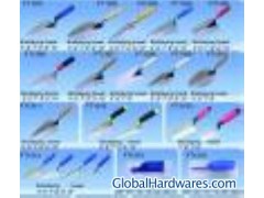 a trowel is a tool with a pointed, scoop-shaped metal blade and a handle. It is used for breaking up earth, digging small holes, especially for planting and weeding, mixing in fertilizer or other additives, and transferring plants to pots. A bricklaying trowel is used by masons for leveling, spreading, or shaping substances such as cement, plaster, or mortar, as well as for breaking bricks to shape them or smoothing a mold.