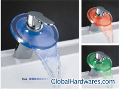 LED faucet color changing with temperature detectable battery needed when water flows down, the LED will light instantly and automatically When water temperature is below 31 degree, blue color will show automatically; When water temperature is between 32~43 degree, warm-white color will show automatically; When water temperature is between 44~50 degree, red color will show automatically; When water temperature is above 51degree, red color will flash immediatelly. The critical point of temperature can be designed as the customers requirement. This item will change its color bu detecting water temperature. Automatical color changing LED lighting color: Blue green red blue-green red-green red-blue red-green-blue battery needed When water flows down,the LED will light instantly and automatically Btightness is such enough even no other lighting fuxtures need This item will color changing with step by step, Single color also can be made. Material:Brass+Glass+plating