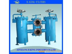 High flow double filter for industry---Introduction1.Material:stainless steel, carbon filter;2.Application: This filter is widely used in metallurgical machinery , mining machinery , heavy-duty machinery etc hydraulic system;3.Structure: Switching valves(1 piece);pressure gauges (2pcs);Differential pressure transducer(1 piece);Housing and filter element(2pcs);Balanced valve (1 piece);gasket and O-ring(2sizes ,2pcs);asbestos pad(2pcs);flat gasket,bolts and nuts(16sets);4.Working principle: There is only one filter to operation in normally work . You can not stop the system then open the pressure balance valve and roll reversing vales .switch to another filter to work , when the filter pressure loss exceed(more than 0.35 MPa ) and then clean or replace the filter element.High flow double filter for industry---Operational process1. Filter installation is completed , open the inlet and outlet valve of the filter , the system start to working;2. When the differential pressure transducer is alarm (differential pressure is achieved 0.35MPa), pls change the conversion valve and let another filter to work;3. Open the vent valve(on the upper cap) and blowdown valve (on the bottom cap), let the dust fluid drain off the filter completely;4. Open the upper cap of filter , take our the filter element;5. Clean or change the filter element , then install the filter element and upper cap;6. Closed the vent valve and blowdown valve and open the inlet and outlet valve of the filter;7. The best advantage of the duplex filter is when the element need to change or clean , don’t need stop system working.