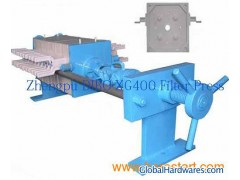 DIBO XG400 Membrane Filter Press DIBO XG400 Rubber Membrane filter press Featuresplate external size:400mmX400mmMax squeezing pressure:0.8MpaFilter Plate Quantity:5pcs-27pcsFilter Press Chamber Volume:0.015m3-0.075m3Filtering Area Available:1.0m2-5.0m2Filter cake thickness:25mmFilter Press Closing Method:manual hydraulic closing,electrical hydraulic closing and automatic hydraulic closingFiltrate discharge method:open discharge/closed discharge/mixed discharge1. Adopt patent filter/membrane plate producing technology,longer service time,excellent filtering/squeezing result2. Perfect filter press frame building,longer service time high pressure endurable during filter press closing and filtration
