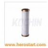 Material: Sintered carbon block cartridge Length: 10" Sintered carbon block cartridge is made of the high quality activated carbon 30-60 mesh which is sintered with high molecule material. With superfine adsorbility, its efficient filtration is between 0.1-5 mic. It can compete with the product of the KX industrial INC in USA