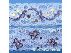 Features:1) Materials:lace,glass beads,coin,wool.2) Can be produced according to customers' designs3) More than 10 colors available4) Good hand feel5) Handmade6) For many decorative purposes for 2006