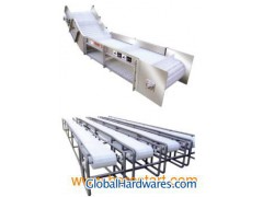 ·Material of modular belt conveyor: PP, PE, POM and other materials.·Structure form of modular belt conveyor: horizontal conveying, inclining conveying, turning conveying etc. Can also add lifting baffles and side plates on the belt to satisfy requiments of various carfts.·Characteristic of modular belt conveyors: modular belt conveyor avoids polution problems and use the carbon steel which is up to hygienic standard. There isn’t any capillary interstice in structure. modular belt conveyor can make a safe manufacture enviroment to avoid the polution osmosis such as the blood and slime that is brought from pork, chicken, duck,fish and shrimp in conveying.