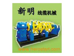 The device is mainly used twisted copper wire system, aluminum wire, ACSR, conductor twisted fan pressed system can also be carried out on copper wire cables or steel wire armor shield XM-400/500 Cross stranding machine Name Parts XM-400 Cross stranding machine XM-500Cross stranding machine 6+12/400 6+12+18/400 12+18+24/400 6+12/500 6+12+18/500 6+12+24/500 Pay-off Pay-off drum specifications 1000mm 1250mm 1250mm 1250mm 1600mm 1600mm Way of pay-off Manual take-off and landing Spool type Spool type Spool type Spool type Spool type Pay-off tension Drum type Disc Disc Disc Disc Disc Host Monofilament diameter 1.5-5.0mm 1.5-5.0mm 1.5-5.0mm 1.5-5.0mm 1.5-5.0mm 1.5-5.0mm Cabling diameter 25mm 35mm 45mm 25mm 35mm 45mm Stranding renovating speed 41-160r/min 41-160r/min 20-160r/min 41-121r/min 41-121r/min 20-121r/min Cabling spacing 60-180mm 160-300mm 215-490mm 60-180mm 160-300mm 215-490mm Stranding inner drum diameter 400mm 400mm 400mm 400mm 400mm 400mm Motor power 11KW 22KW 37KW 15KW 30KW 45KW Traction Way of traction Whee Whee Whee Whee Whee whee Guide sheave diameter 1000mm 1600mm 2000mm 1600mm 1800mm 2000mm Traction wheel material Steel Steel Steel Steel Steel Steel Paying-out speed 4.56-32.86m/min 4.82-35.48m/min 4.82-35.48m/min 4.82-35.48m/min 7.3-50m/min 8.0-46.2m/min Gear Box 27 Class 27 Class 36 Class 27 Class 36 Class 36 Class Take-up machine Take-up drum diameter 1250mm 1600mm 2000mm 1600mm 2000mm 2500mm Way of take-up Spool type Spool type Spool type Spool type Spool type Spool type Way of sire-arranging Rod Rod Rod Rod Screw Screw Motor power 2.5kg. M 4kg. M 6kg. M 4kg. M 6kg. M 6kg. M Control Box Z4 DC Motor Speed Control, Variable Speed, according to users need to configure Operation direction From left to right