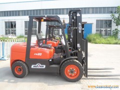 Forklift Truck Specification:1) Load capacity: 3000kg2) Load center: 500mm3) Max. lifting speeds (full load): 400mm/s4) Max. driving speeds: 18/20km/h5) Drawbar pull: 10,000N6) Gradeability: 15/20%7) Lifting height: 3,000mm8) Free lift: 80mm9) Tilting angles (forward - backward): 6 / 1210) Min. turning radius: 2,500mm11) Angle stacking aisle: 2,110mm12) Min. under-clearance: 135mm13) Overall length: 3,800mm14) Overall width: 1,230mm15) Overall height (with mast retracted): 2,110mm16) Overall height (with mast extended): 4,270mm17) Overall height to overhead guard: 2,110mm18) Wheel base: 1,700mm19) Front tread: 1,000mm20) Rear tread: 970mm21) Front tyre: 28x9-15 PR22) Rear tyre: 6.5 - 10PR23) Total weight: 4100kg24) Fork width: 125mm25) Fork thickness: 45mm26) Backrest height: 1,225mm27) Fork length: 1220mm28) Engine model: 490BPG (made in China), imported engine ISUZU 4JG2PE-01(Made In Japan) optional29) Rate power: 37kW30) Rotate Speed at rate power: 2,650rpm31) Max. torque: 148N.m32) Rotation speed at max. torque: 1,800~1900rpm33) Power shift :Hydraulic transmission34) Packing Details:2 pcs/20CTN, 6 pcs/40CTN