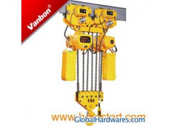 Shell:Light aluminum alloy shell shall be adopted,which is light but hard and fit for the use in the terrible work environment with a high heat dissipation rate and all tightness design.Inverse phase sequence protecting device:It is the special electrical installation which controls the circuit not to work in case of wiring error in the power supply.Limit switch:The limit switch device is installed where the weight is lifted on and off to make the motor to stop automatically so as to prohibit the chains from exceeding for safety.24V/36V device:It is used to prohibit the emergencies from occuring in case of the leakage in the switch.Side magnetic braking device:This device shall realize the instant brake in case of the power dump.Chain bag:It shall be light ,handsome and durable.Chain:The chain shall adopt the imported FEC80 ultra heat-treatable aluminum alloy chain.Type WBH-15006S Capacity(t) 15 Standard Lifting Height(m) 3 Lifting Speed(m) 1.8 Lifting Motor Power(kw) 3.0X2 Rotation Speed(r/min) 1440 Phases 3 Voltage(v) 200-440 Frequency(Hz) 50 Operating Motor Power(kw) 0.75X2 Rotation Speed(r/min) 1440 Operating Speed(m/min) 11/21 Phases 3 Voltage(V) 200-440 Frequency(Hz) 50 Chain Turns 6 Chain Specification O11.2 Test Load(t) 18.75 I-Beam(mm) 150-220 Weight Added with 1m Higher(kg) 17