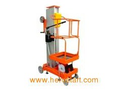 The product adopts the design of aluminum mast which is light and smart. Emergency down-valve device, Manual-hydraulic elevating (NO POWER SUPPLY), flexible and reliable. The dimension is small when folded. It can be easily moved into elevator, ordinary door and narrow passage. It is only for personal working and loading in exhibition hall, warehouse, supermarket, airport, port, etc. CE certified.Model No. SGTWY6.5-1000 SGTWY8-1000 Max. Platform Height mm 6500 8000 Max. Machine Height 7960 9460 Min. Platform Height 620 Ground Clearance 50 Lift Rated Capacity kg 125 Platform Size mm 600*600 Outspread Size 1740*1450 Overall Length mm 1200 Overall Width 690 Overall Height 2050 Overall Net Weight kg 310 340