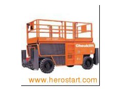 Introduce: The product is mainly applied in the fixing, constructing, detecting and maintenance of large-scale bridge, steel structure workshop and sorts of aerial equipment. It can be used in all kinds of rugged terrain. CE certified. 1)Structure: Scissors, enable extended-platform, good performance of elevating and loading. 2)Sole control system, drive mode: 4x4, maximum speed: 6.5km/h. 3)Gradeability: 40%. 4)Tilt alarm, the auto-leveling system of four crutch-leg. 5)Emergency down-valve device. 6)Double anti-press protection: Electric-control and safety-web.