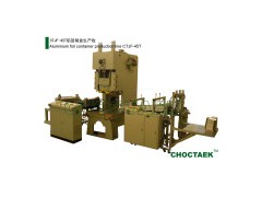Aluminium foil container plant CTJF-45T can produce aluminium food containers, dishes and trays. The working speed of production line CTJF-45T is 40-70 PCS/min, and its speed depends on container's size and complexity. Aluminium foil container plant CTJF-45T is composed of the followings: 1. Decoiler (with an auto-lubricator) 2. Electrical control panel 3. Foil feeder 4. 45 ton pneumatic press 5. Aluminium foil container mould 6. Container collector(semi-auto or full-auto) 7. Collection desk Main Features: (1)This full aluminium foil container plant work automatically. Worker control and regulate this production line through electric control panel, including the air-pressure and electricty. (2)The Max. Width of decoiler is about 550mm. The Max. Diameter of foil roll is 650mm. (3)There is an auto-lubricator on the feeder, which can lubricate aluminium foil automatically. (4)The foil feeder provides the supply of right quantity and length of aluminium foil, and it is controlled by computer, which assure a high-precision step. (5)The press can be equipped with single cavity or multi-cavity moulds for producing wrinkle-wall or smooth-wall container. It is equipped with a mould lifter which can lift and low the mould automatically when change a mould. (6)We can design and manufacture different machines on different customers' request. The working flow of aluminium foil container plant CTJF-45T: Aluminium foil roll---decoiler---foil feeder---45T pneumatic press---mould---container collector--- collection desk