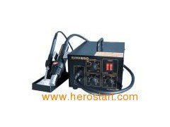 SUNKKO 850 2in1 Soldering and Rework Station == / FEATURE == 1) Antistatic soldering iron and hot air desoldering 2 in 1 design to save the cost. 2) Antistatic 24V soldering iron has good protection of PCB. 3) Soldering iron used long life ceramic heater. 4) Individual function start save energy, or share function by 2 users at the same time. 5) Carry handle is convenient to move. == SUNKKO 850 2in1 == Max/Steady Power: Hot Handle 420W/300W; Soldering Iron 60W/30W Temperature: Hot Handle 100~420 oC; Soldering Iron 200~480 oC Thermostat: PID +/-1 oC Heater: Hot Handle 250W Ceramic; Soldering Iron 24V 50W Ceramic Air Pump: 45W Diaphragm Airflow: 0.3~24 L/min Ground Resistance: < 2Ω Ground Potential: < 2mv Dimension: 185(L)245(W)170(H) mm Packing: 33.5x28x19 cm Gross weight: 5.5 kg *Information maybe revised without prior notice.