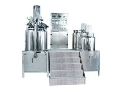 500 L Vacuum Emulsifying Machine The device separately from the oil tanks, water tanks, oil & water tanks rated mixing, vacuum homogeneous emulsifying pot, water ring vacuum pump, air filters, lighting observation holes, operation control cabinet and so on. It is the most applicable equipment for the production of high-grade skin care products. The device of oil, water tanks are made of three materials, the inner wall is made of the import of high quality 316L stainless steel, the thickness is 6mm, media thickness 6mm, outer layer of imported 304-2B, thickness 3mm, the outer layer has insulation devices, is to ensure the reduction and dispersion of heat out, but also to avoid scalding the staff. Vacuum homogeneous emulsifying pot is made of three layer materials, the inner wall 316L is made of the import of high-quality stainless steel, the thickness of 6mm, the special light treatment, the media layer is A3 stainless steel, the thickness is 5mm. Outer layer is made of imported 304-2B stainless steel, the thickness of 3mm, a special light treatment, tap water can be recycled cooling, vacuum suction materials, including wall stirring speed, voltage 380V, power 11KW, 2880 rev / min. The United States ROSS Technology elaborate homogeneous machines, the structure of unique, high-energy implementation of fluid shear, milling, and is equipped with a digital time relay device. The device volume oil tank 180L, water tank capacity 450L, the working volume of master pot is 500L, limit vacuum is 0.08-0.09Mpa.