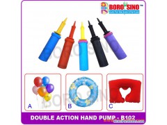 Balloon hand pumb/high quality hand pump Product detail1.Packing: 1pc / PE bag, 100pcs/carton2.Fast inflating and saving in half time This handy balloon pump gives you the ''full power''to inflate as many balloons as you want.Save your breath and energy Variety of colors are availableThis balloon pump is made of durable plastic and features a long nozzle specially designed to hold the neck of a balloonSimply slide on the balloon and operate the balloon pump like a standard bicycle pumpDetails:Type Event & Party Supplies Event & Party Item Type Party Decoration Occasion Family party Place of Origin Guangdong, China (Mainland) Brand Name BOROSINO Model Number B102 Description Suitable for inflat balloons Color Various Material Plastic Use Advertising Toy /inflating balloons / swimming ring Meas 100pcs/55*30*56cm Size Dia 5*28cm Production Lead-time 20 days N.W/G.W 7.8/9KGS Certificate CE